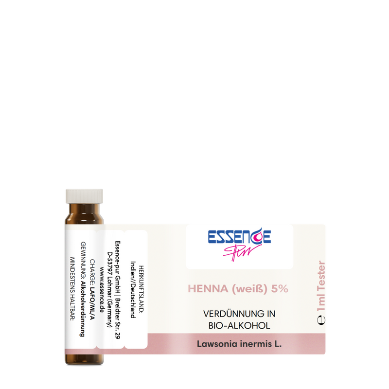 Henna weiß Absolue 5% erzählt von einer tiefen Verbindung zu den duftenden Landschaften Indiens und Deutschlands. In der Duftsprache verkörpert es eine exotische Frische, die wie ein zarter Hauch von Morgennebel die Luft füllt und die Pflanzenwesen dieser Regionen ehrt.