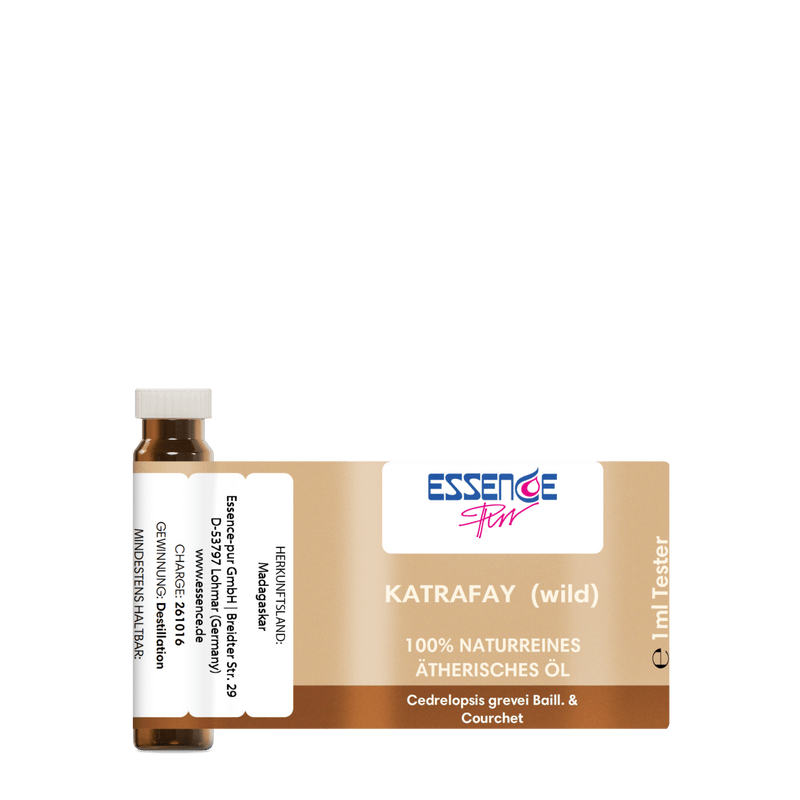 Das Katrafay-Öl wird durch behutsame Dampfdestillation aus Rinde kontrollierten Wildwuchses gewonnen. Essence, die für ihre Reinheit und Nachhaltigkeit bekannt ist, sichert die hohe Qualität dieses Schatzes der Natur.