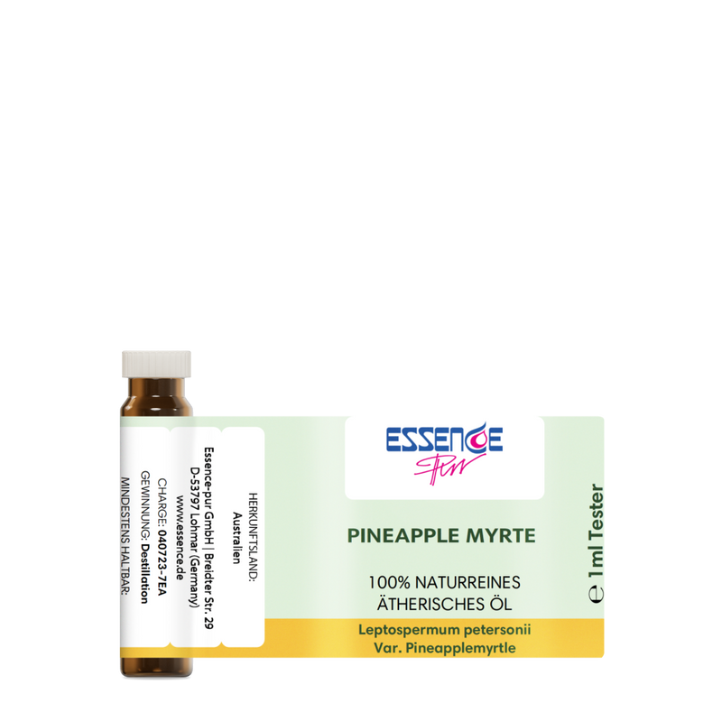 Das Pineapple Myrte Öl (Leptospermum petersonii) aus Australien offenbart ein eindrucksvoll exotisches Duftprofil. Es entfaltet zärtlich die Wahrnehmungen und verbindet tropische Noten mit der wilden Essenz der Natur.