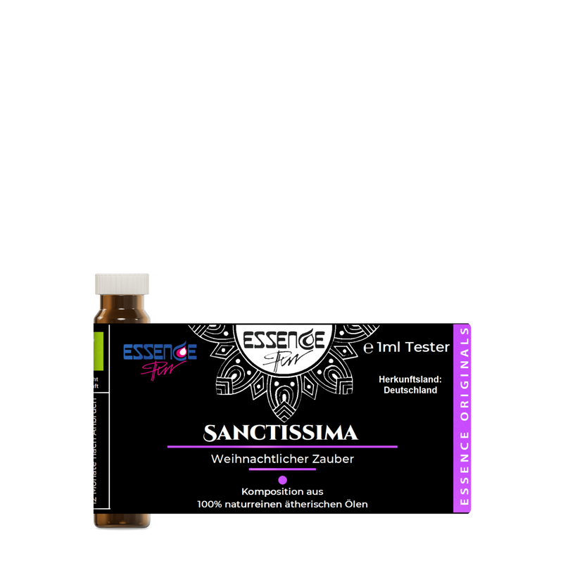 So duftet Weihnachten! Mit “Sanctissima” verzaubern wir Deine Wohnung in die behagliche Weihnachtsstube aus dem Märchen. Es duftet nach selbstgebackenen Plätzchen und Tannengrün. Nach Orangen, Zimt und Nelken. Ein wärmendes Kaminfeuer knistert leise im Hintergrund. Festlich verpackt liegen die Geschenke unter dem Lichterbaum, und draußen vor dem Fenster fällt leise der Schnee. Den Zauber von Weihnachten erleben: Das ist “Sanctissima” – der herrliche Weihnachtsduft von Essence. “Sanctissima”, das ist “Die Allerheiligste”. Der Name leitet sich ab von jenem alten sizilianischen Marien-Hymnus, aus dem das Weihnachtslied “O du fröhliche” entstand. Wie Kerzenschein und Lebkuchen, Bratapfel und Glockenklang steht dieses für die wunderbarste Zeit des Jahres. Dem entspricht diese erlesene Komposition aus den hochwertigsten ätherischen Ölen. Denn mit „Sanctissima“ interpretieren wir den weihnachtlichen Duft-Dreiklang aus süßen sizilianischen Orangen, Ceylonzimt und balsamischem Nelkenöl neu. Das ist ungewöhnlich anziehend und verführerisch – unerwartet und zugleich wohlig vertraut. Bereits in der sanften Kopfnote schlägt eine fruchtige Marzipan-Note an. Erzeugt wird diese durch kostbares natürliches Bittermandel-Öl im Zusammenspiel mit orientalischem Kardamom. Darunter vermischen sich die Düfte des Advents: die Aromen von sonnengereiften Limetten und Mandarinen, von frisch-harzigen Koniferen-Ölen und den wärmenden Gewürzen der weihnachtlichen Festtagstafel. Schenke Dir und Deinen Liebsten in der Adventszeit die märchenhafte Wohlfühl-Stimmung von „Sanctissima“ – und erlebe Weihnachten von seiner besinnlichsten Seite.