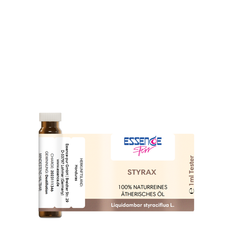 - Kopfnoten: Die ersten wahrnehmbaren Noten von Styrax Öl sind süßlich und warm, mit Anklängen von Vanille und Honig. Diese süßen, leicht würzigen Noten verleihen dem Öl eine einladende und angenehme Öffnung.